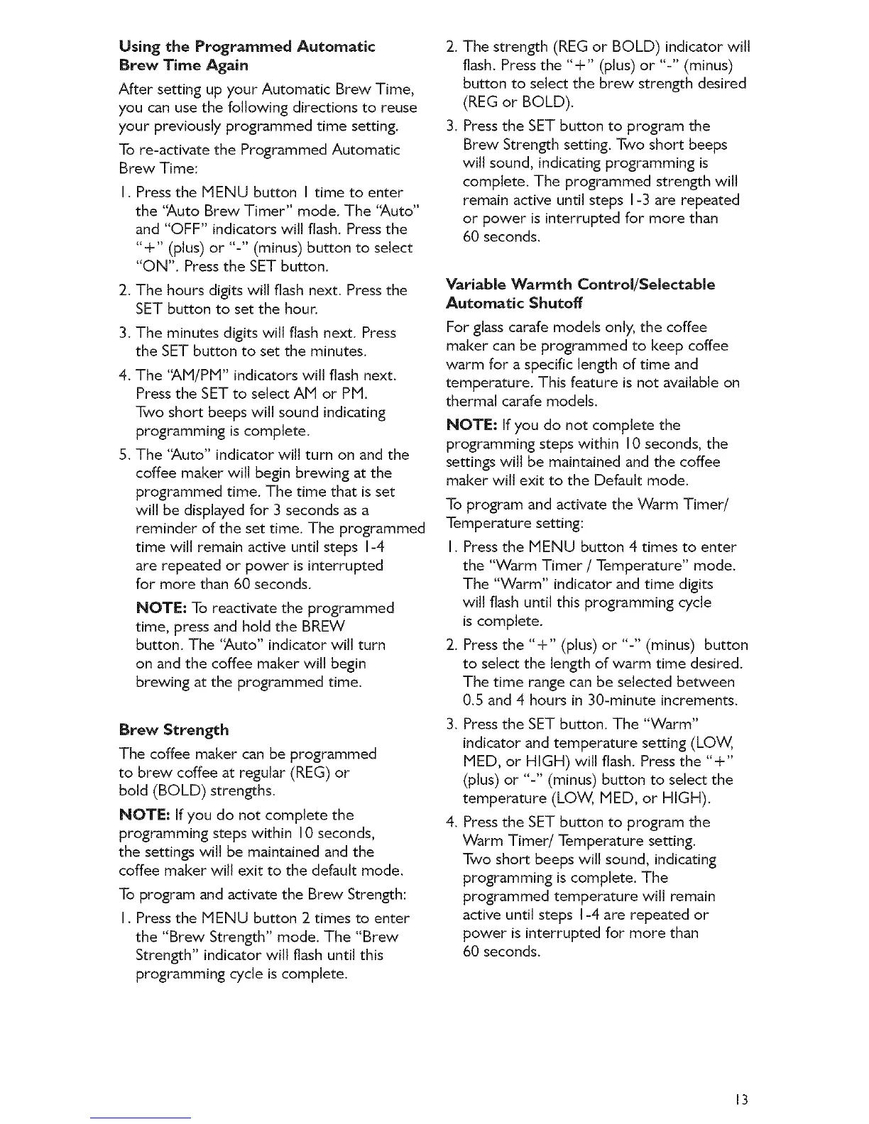 Brew Strength setting. Two short beeps