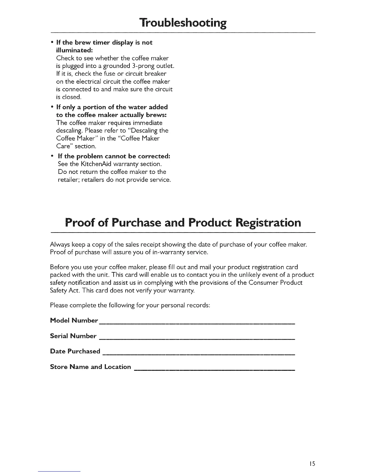 Always keep a copy of the sales receipt showing the date of purchase of your coffee maker.