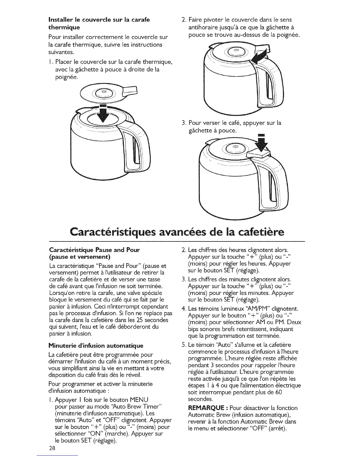 I. Placer le couvercle sur la carafe thermique,