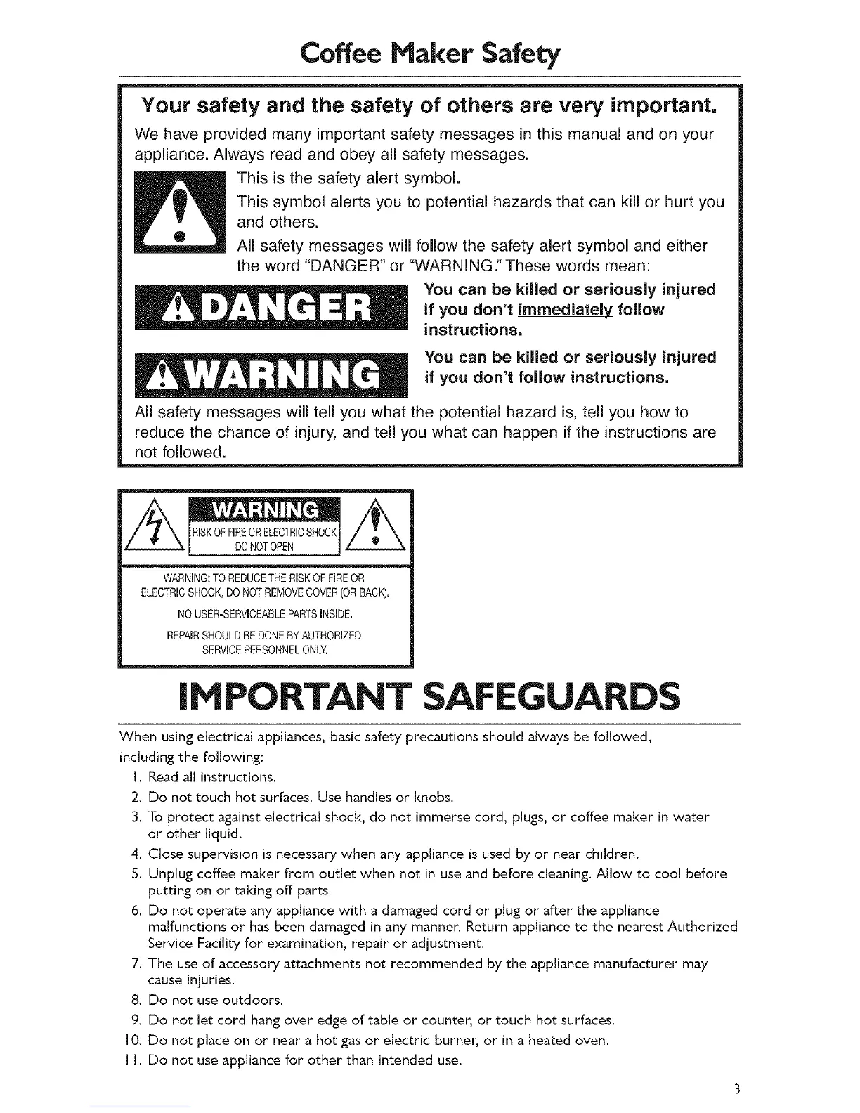 3. To protect against electrical shock, do not immerse cord, plugs, or coffee maker in water