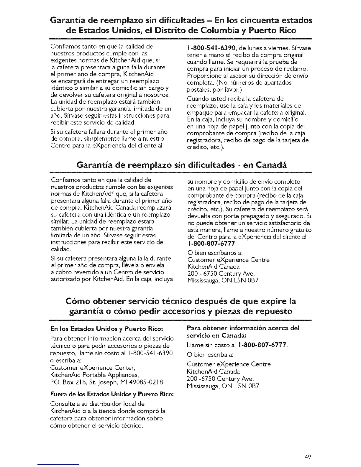 Garantia de reernplazo sin dificultades = En los cincuenta estados