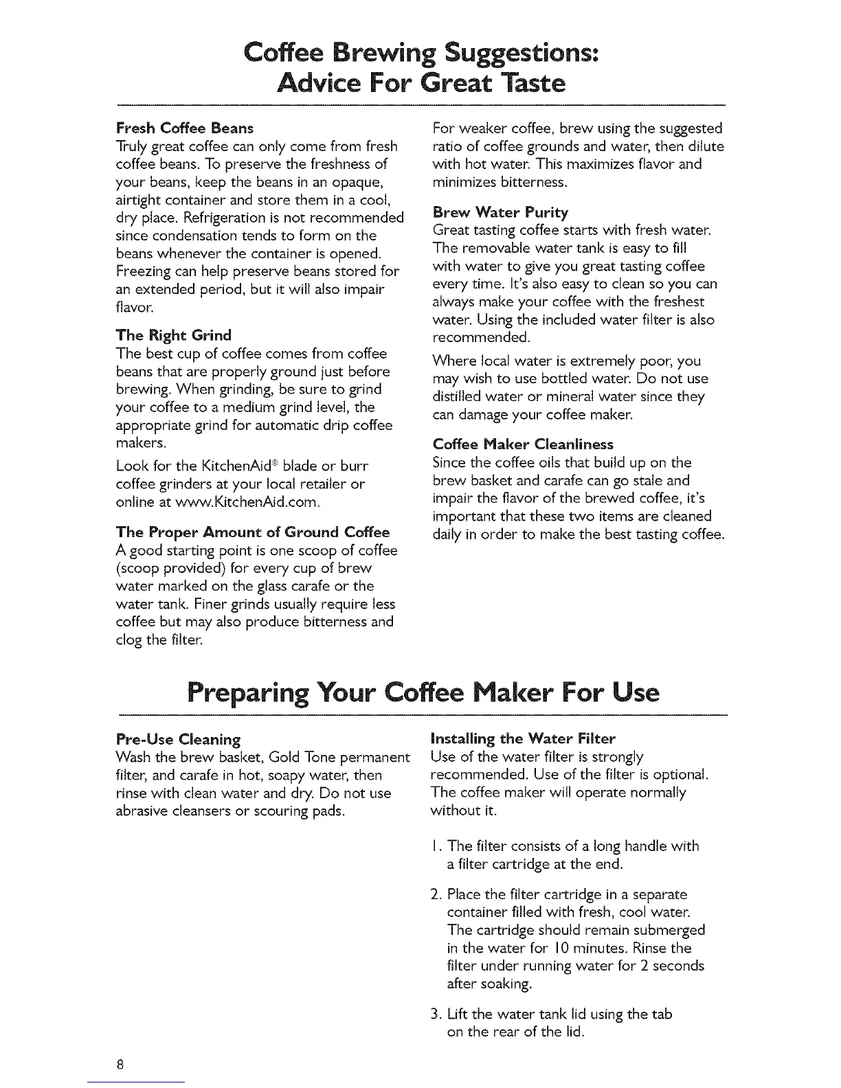 Preparing Your Coffee Maker For Use