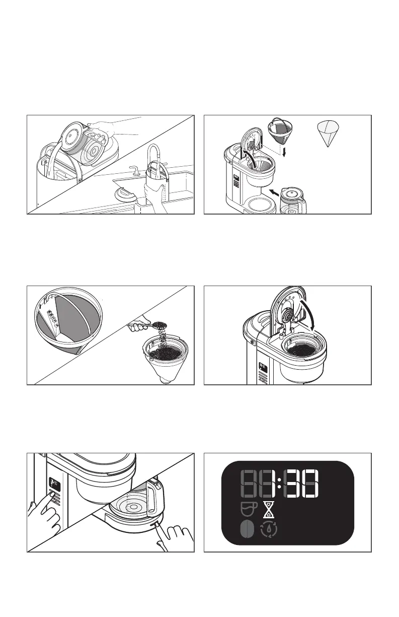 Auto Set (for pre-programmed brewing) and changing the brew strength (regular or bold).