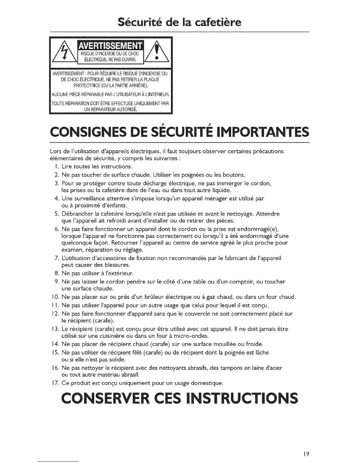 13. Le r_cipient (carafe) est con_.u pour &tre utilis_ avec cet appareil. II ne doit lamais &tre