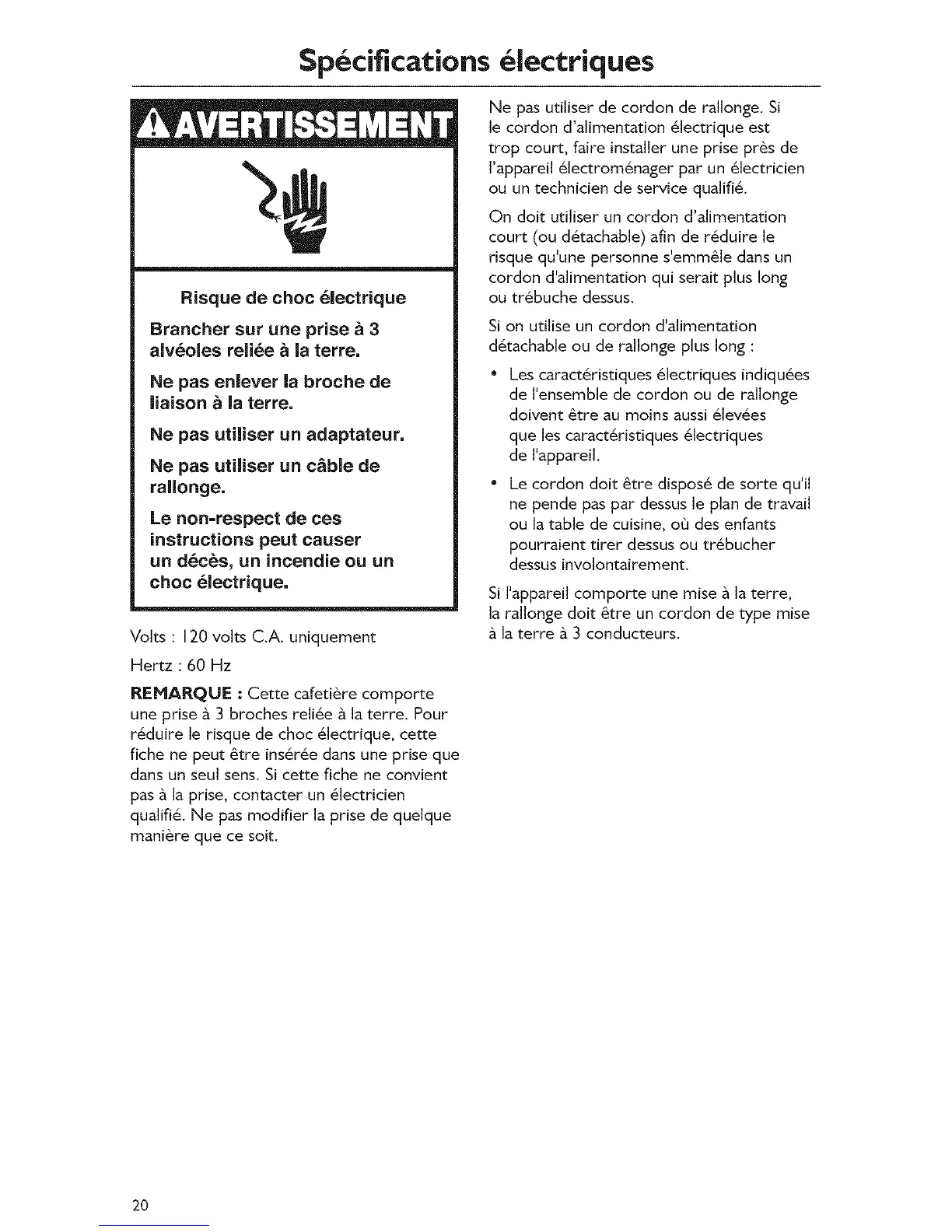 r6duire le risque de choc 61ectrique, cette