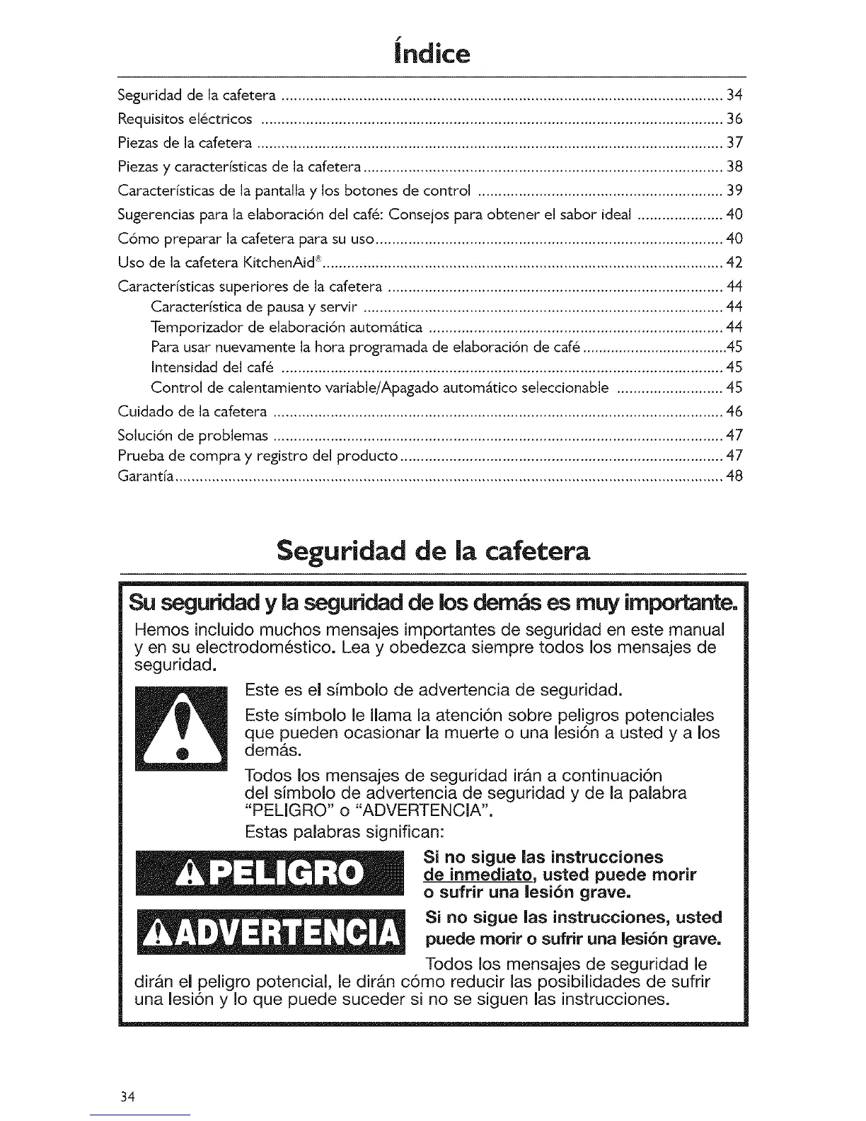 Uso de la cafetera KitchenAid _.................................................................................................. 42