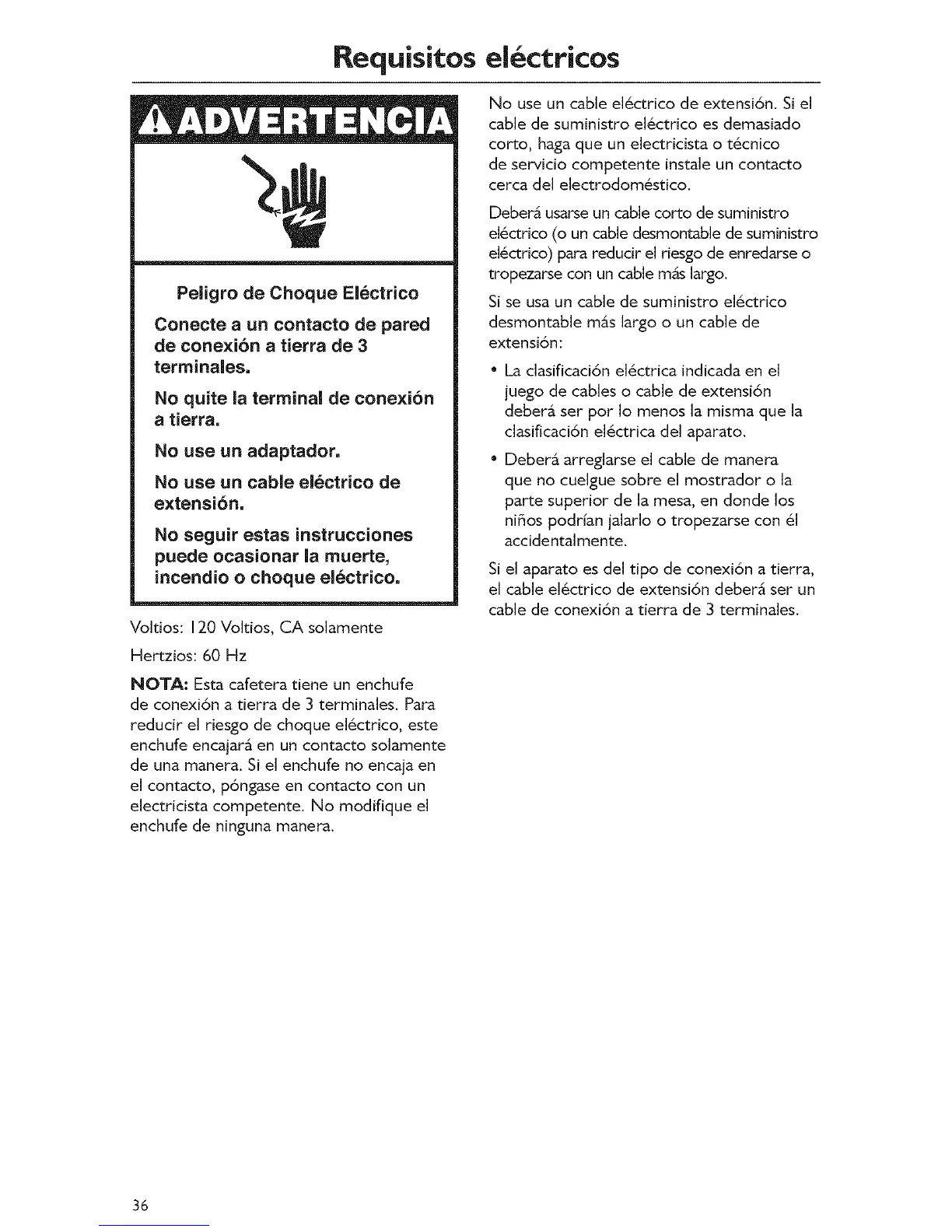 No use un cable el_ctrico de extensi6n. Si el