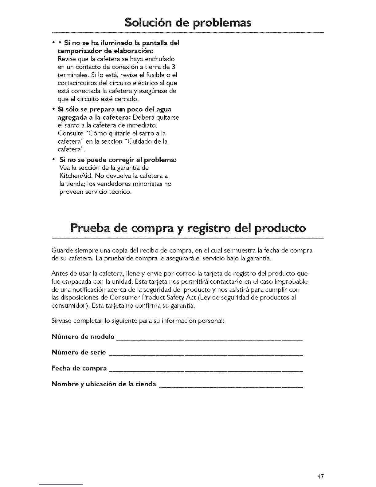 de su cafetera. La prueba de compra le asegurar_ el servicio bajo la garantfa.