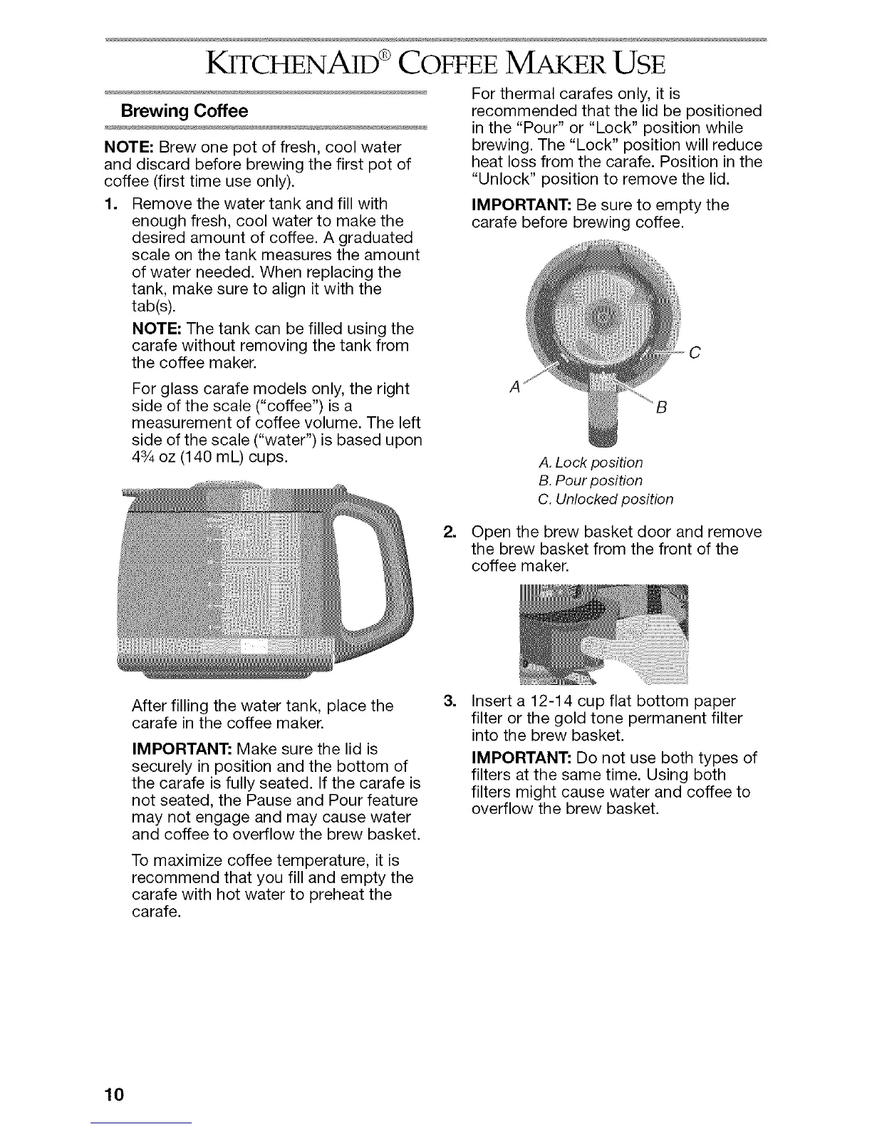 KITCHENAID ®COFFEE MAKER USE