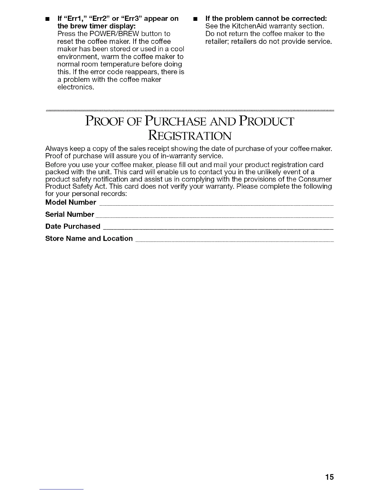 Before you use your coffee maker, please fill out and mail your product registration card