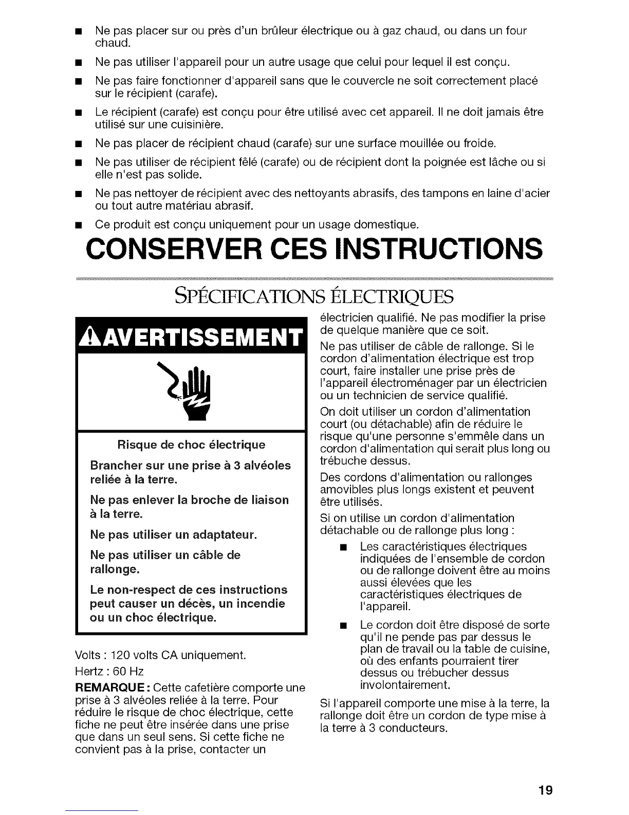 Le recipient (carafe) est con£;u pour _tre utilise avec cet appareil. II ne dolt jamais _tre