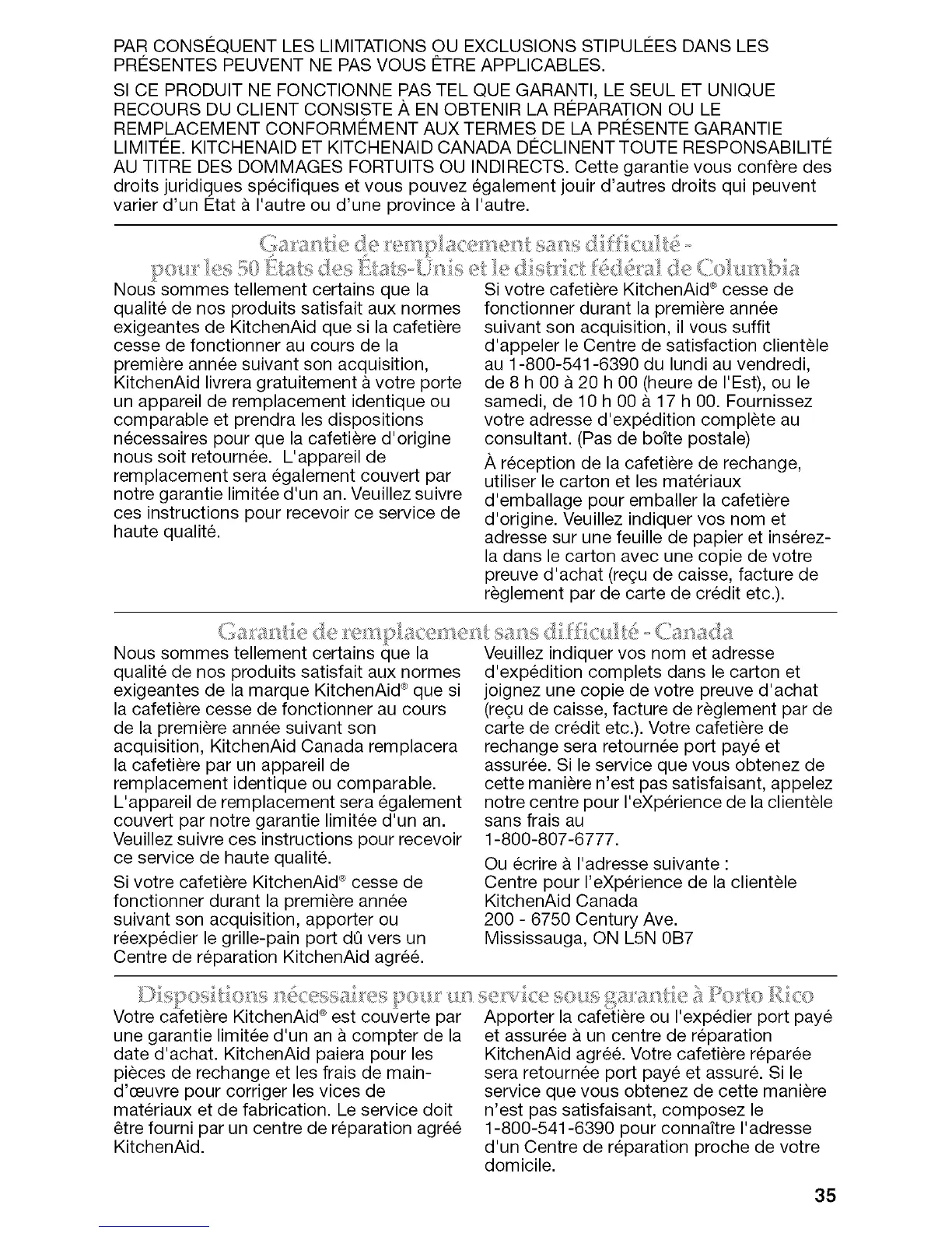 LIMITIIIE. KITCHENAID ET KITCHENAID CANADA DIIICLINENT TOUTE RESPONSABILITIII
