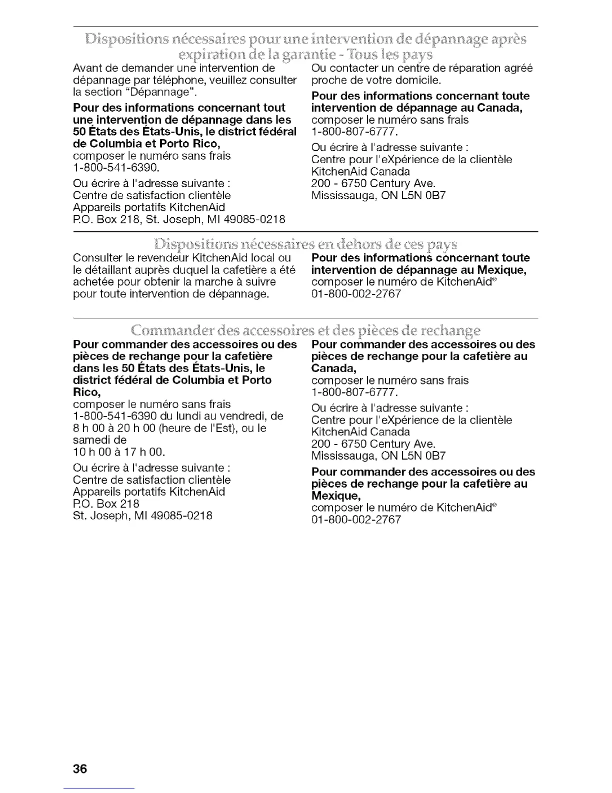 Consulter le revendeur KitchenAid local ou Pour des informations concernant toute