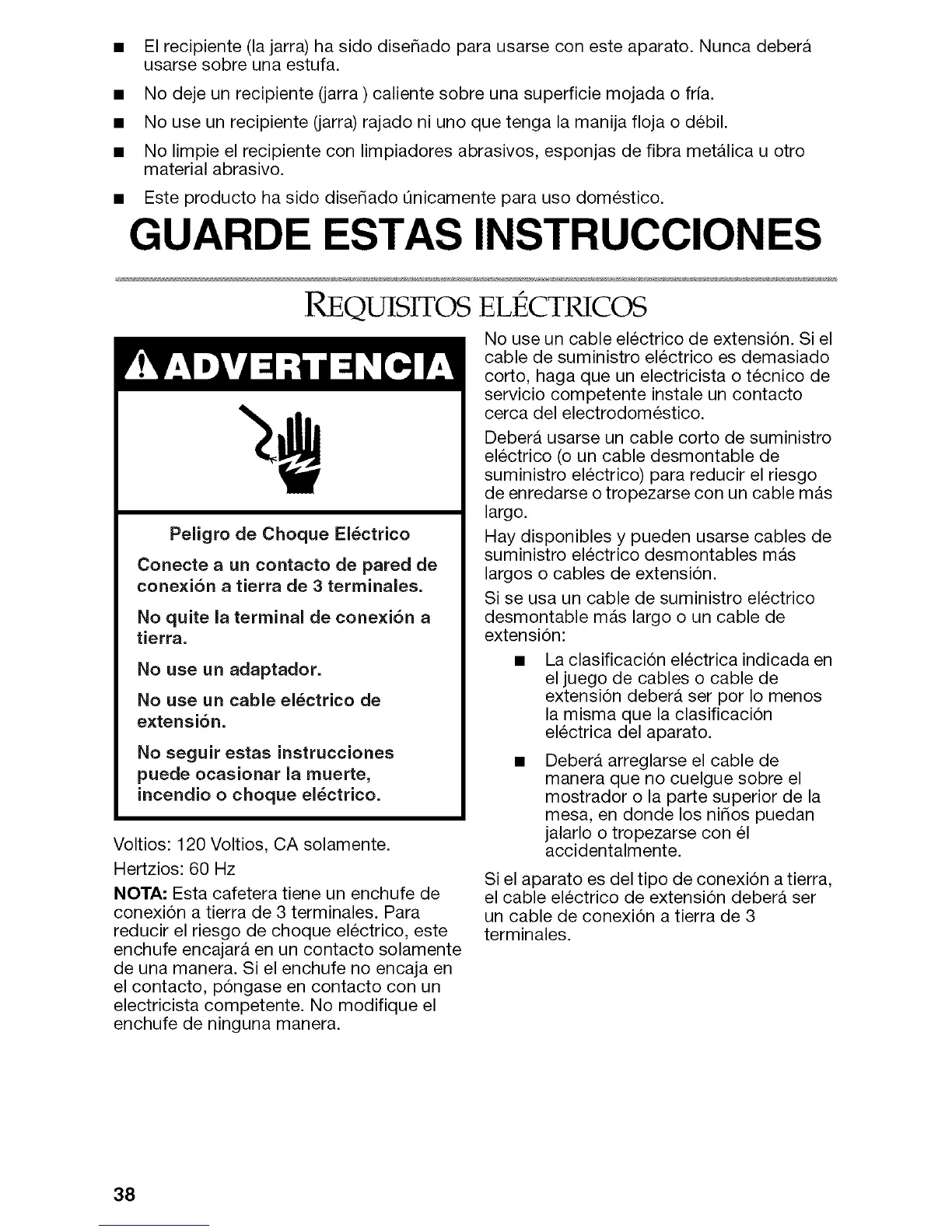 Voltios: 120 Voltios, CA solamente.