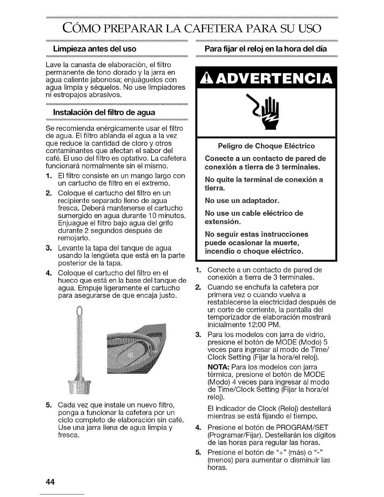 cafe. El uso del filtro es optativo. La cafetera
