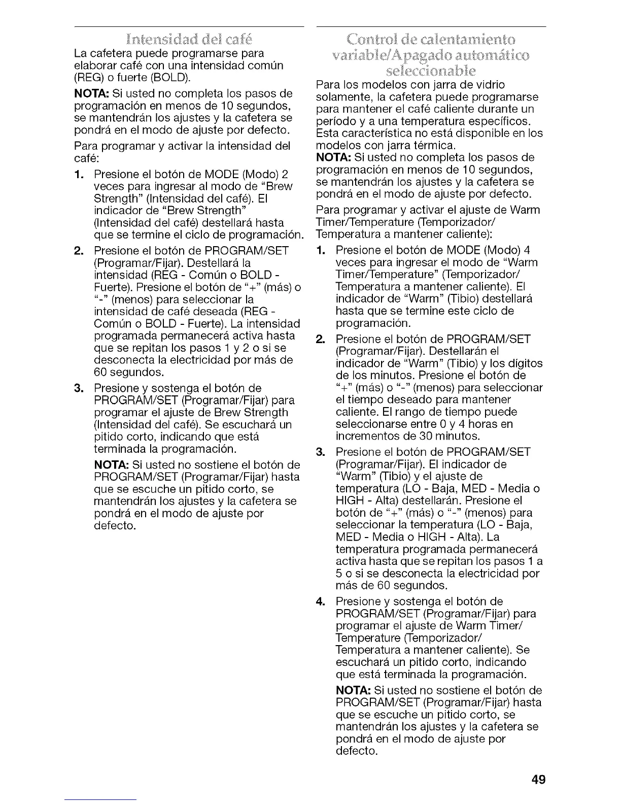 solamente, la cafetera puede programarse