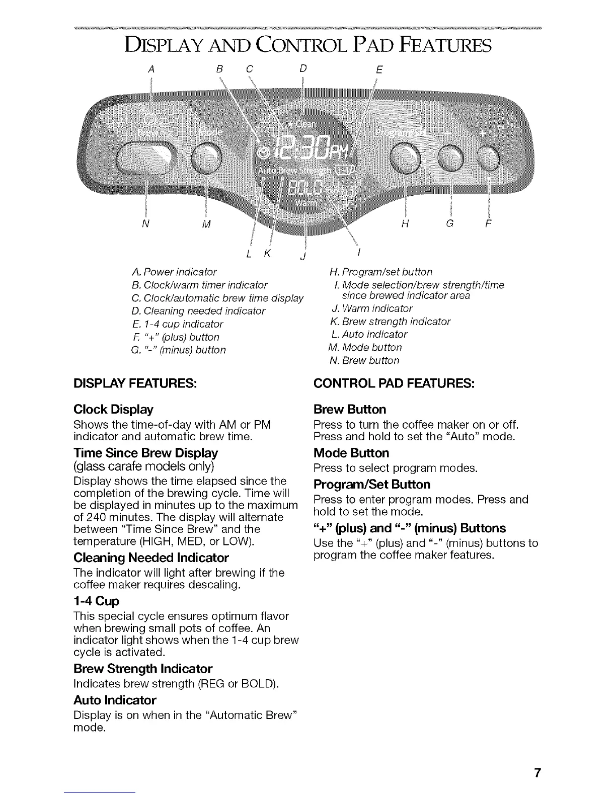 DISPLAY AND CONTROL PAD FEATURES