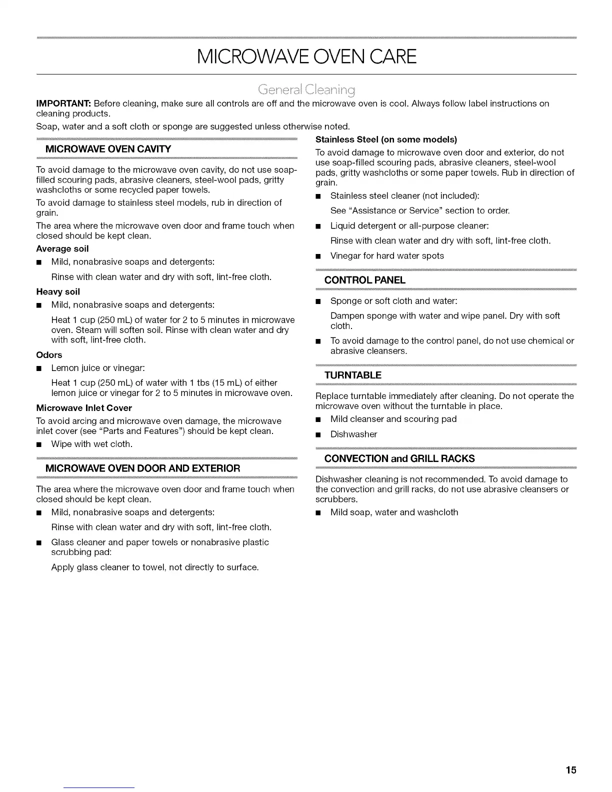 IMPORTANT: Before cleaning, make sure all controls are off and the microwave oven is cool. Always follow label instructions on