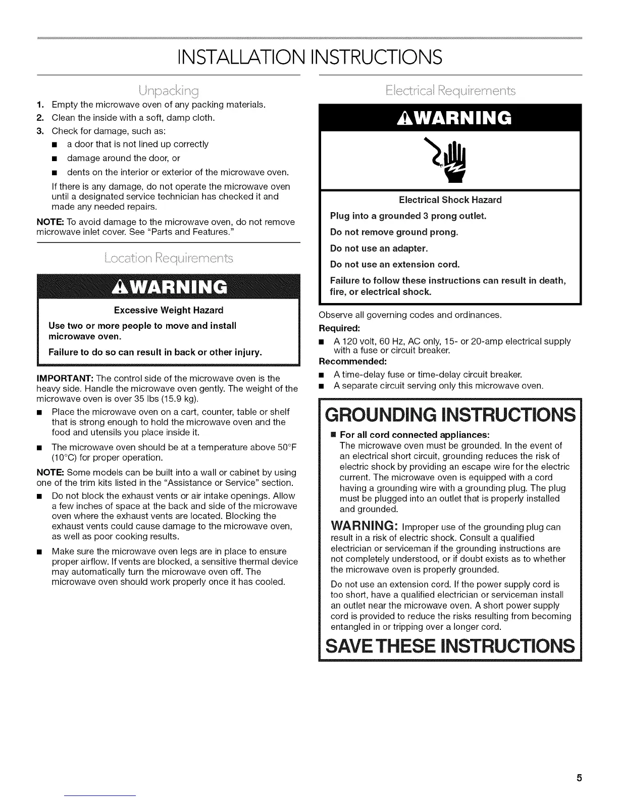 • A 120 volt, 60 Hz, AC only, 15- or 20-amp electrical supply
