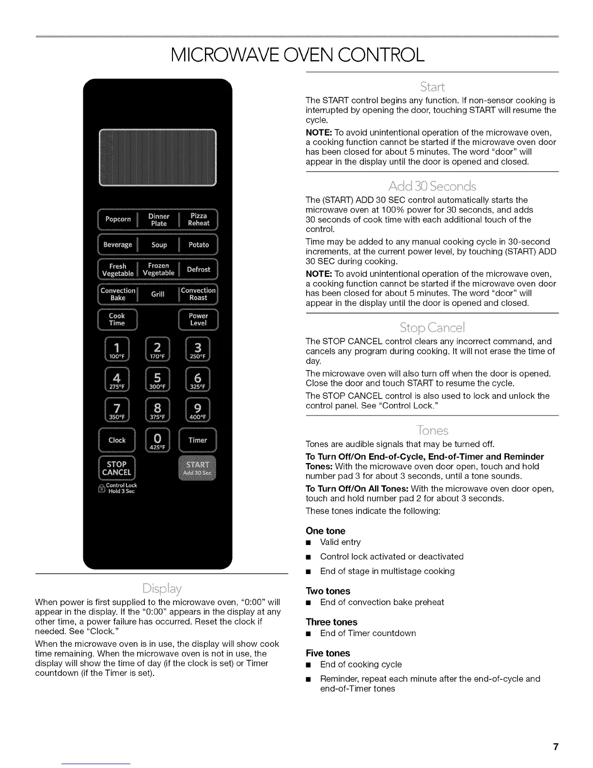 Tones: With the microwave oven door open, touch and hold