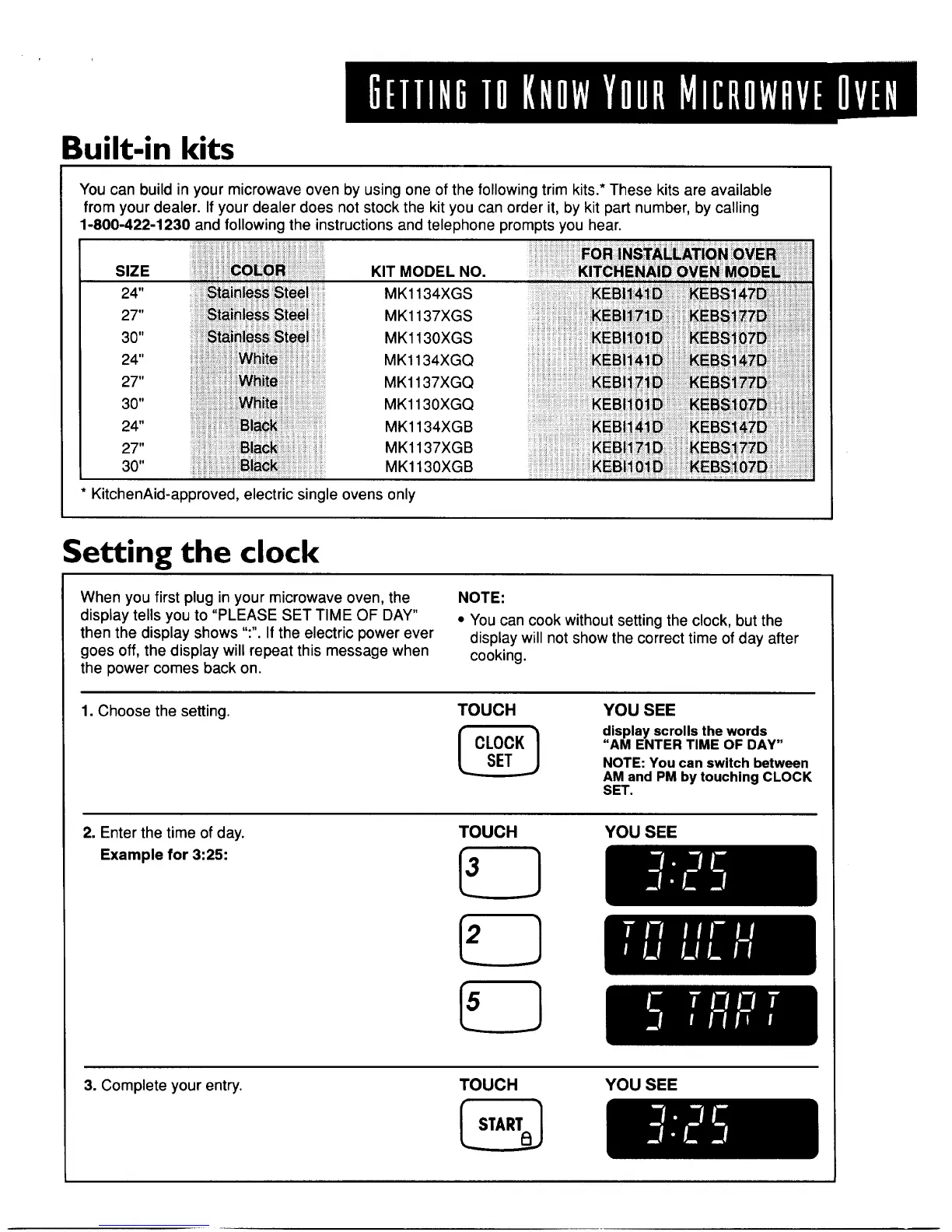 KitchenAid KCMS135 - Built-in Kits and Setting the Clock
