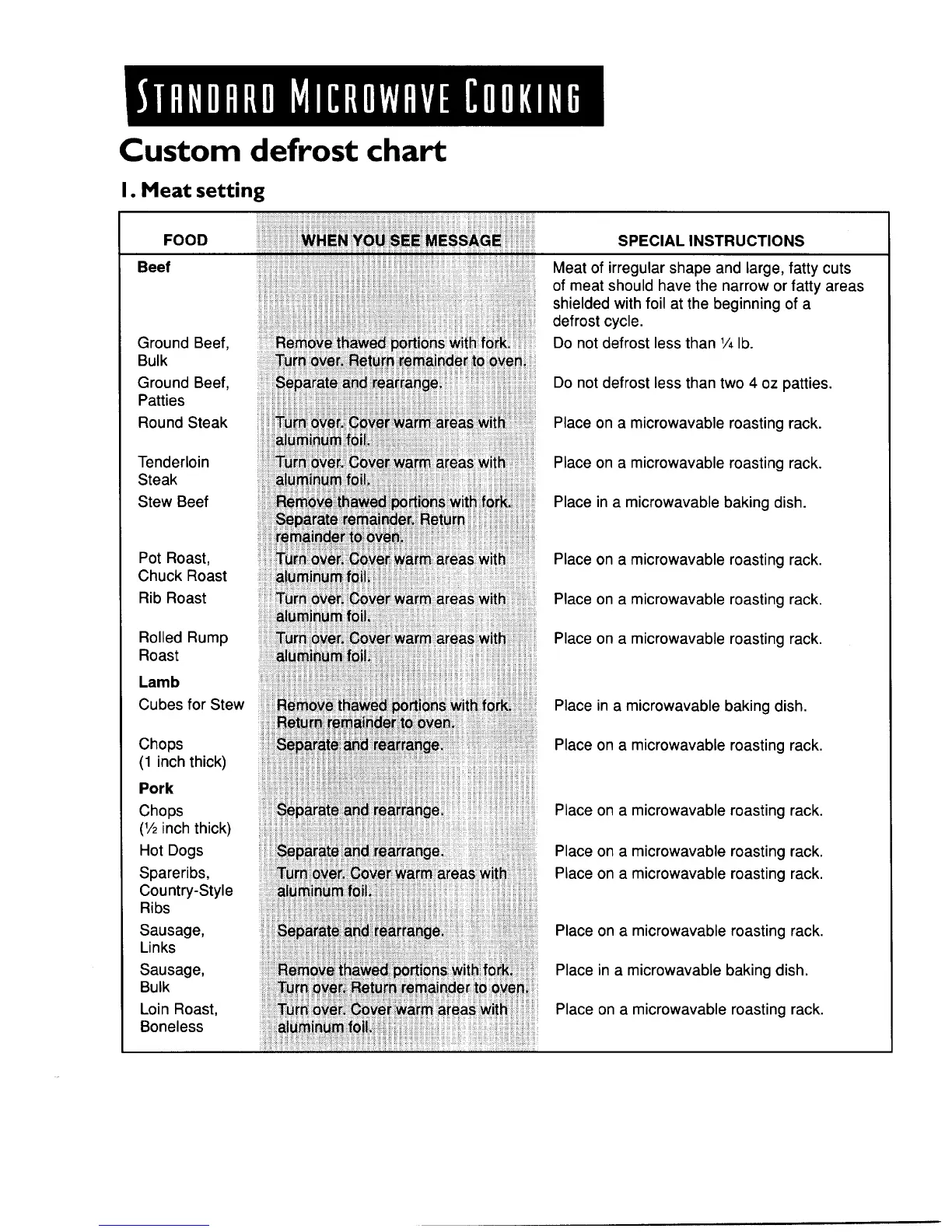 KitchenAid KCMS135 - Custom Defrost Chart: Meat