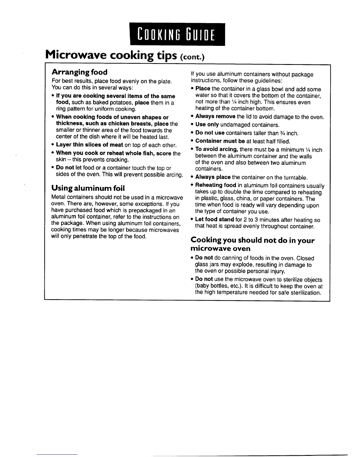 KitchenAid KCMS135 - Using Aluminum Foil; Cooking Not Recommended