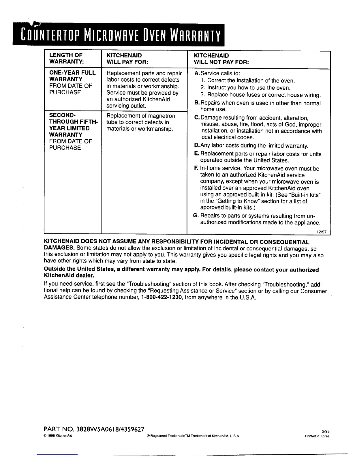 KitchenAid KCMS135 - KitchenAid Warranty Information