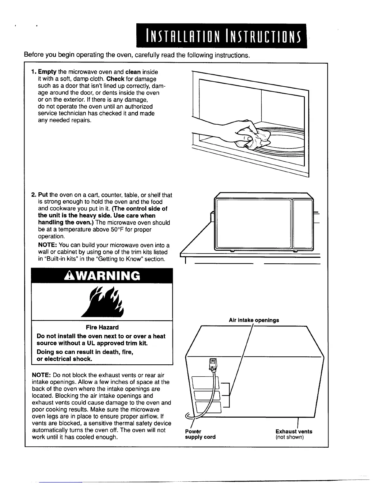 KitchenAid KCMS135 - Installation Instructions; Oven Placement and Airflow