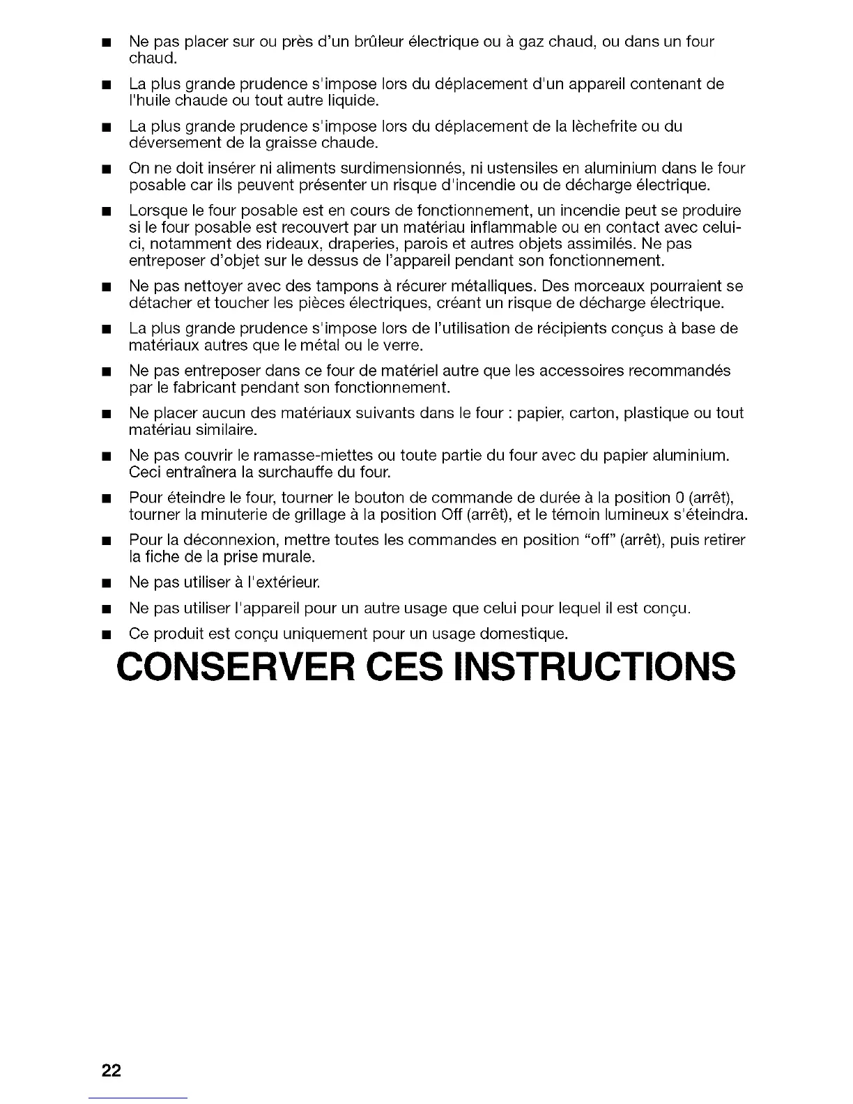Ne pas entreposer dans ce four de materiel autre que les accessoires recommandes