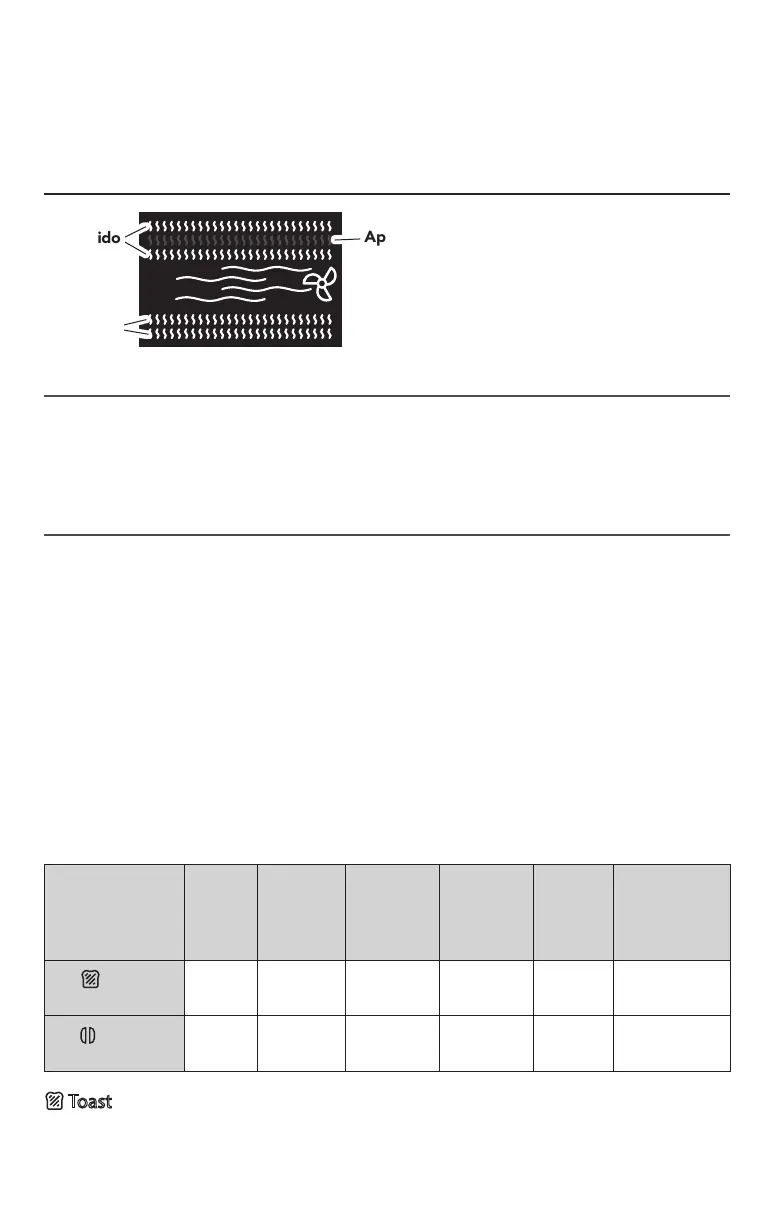 Consulte los cuadros que aparecen abajo para ver las opciones de cocción y de tostado, o vea