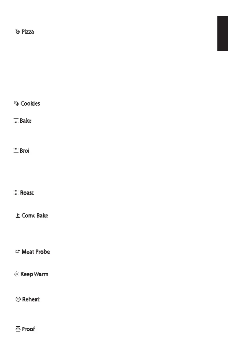 • Convection bake is similar to the bake function with all 5 heating elements working. In