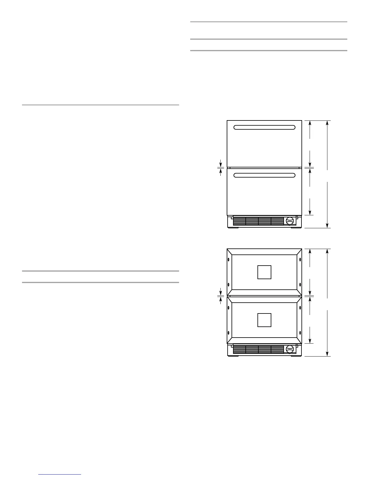 de 1" (25 mm) sous les tiroirs réfrigérés, ajouter ¾"