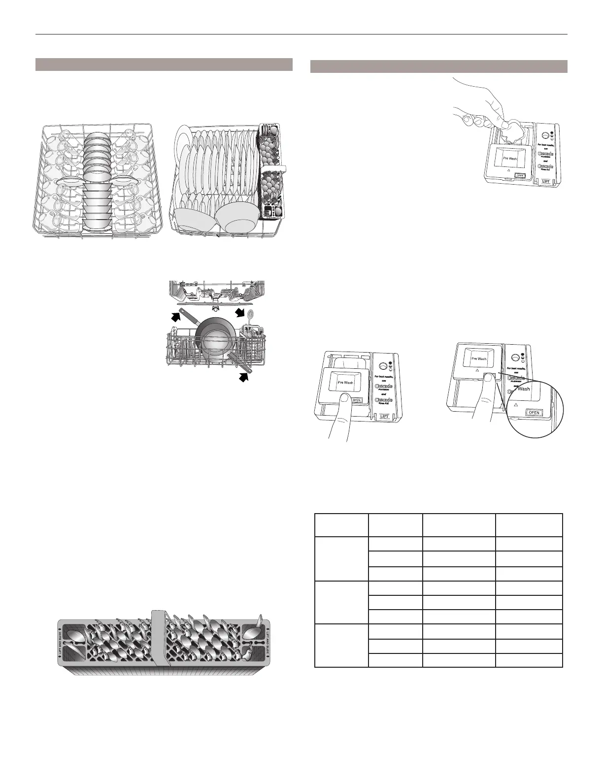 ■ Place plastics, small plates, and glasses in upper rack. Wash