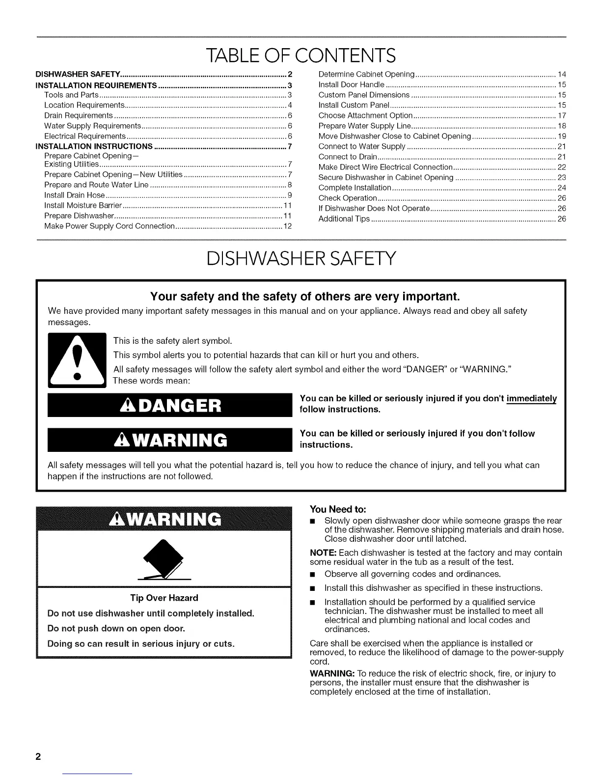 DISHWASHER SAFETY ............................................................................... 2