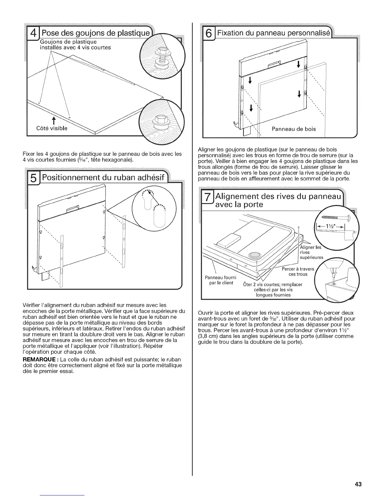 porte). Veiller & bien engager les 4 goujons de plastique dans les