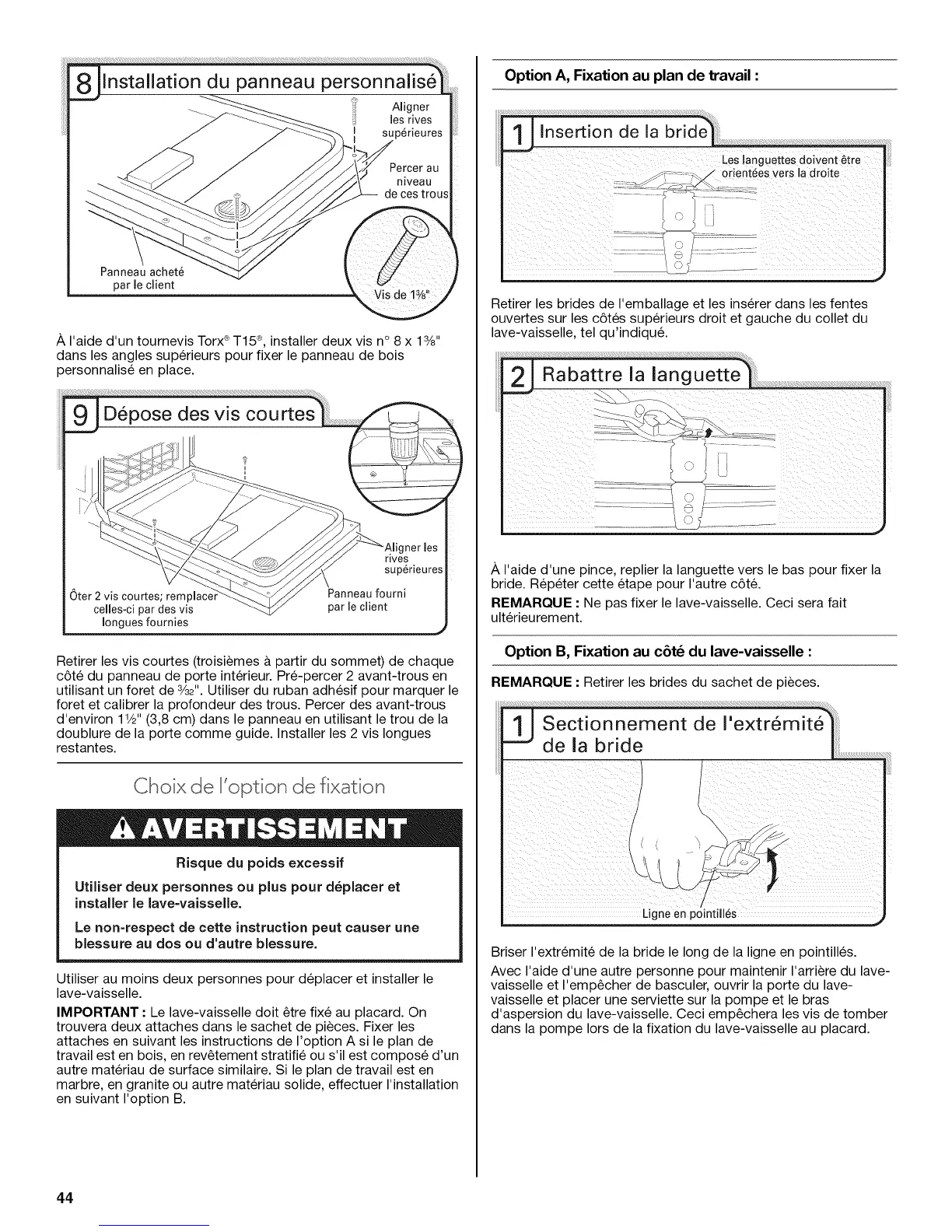 Option B, Fixation au cet_ du lave-vaisselle :