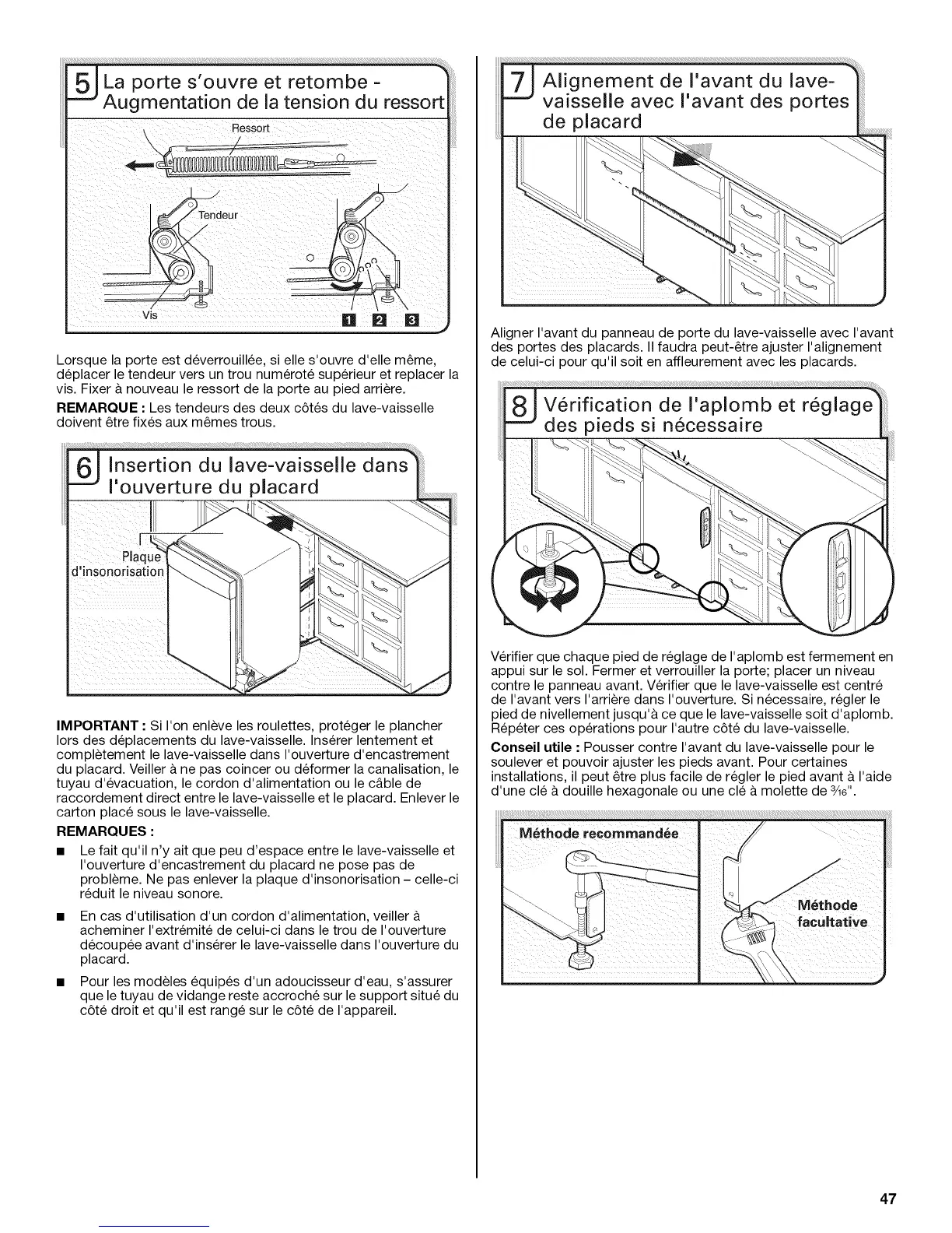 REMARQUE : Les tendeurs des deux c6tes du lave-vaisselle