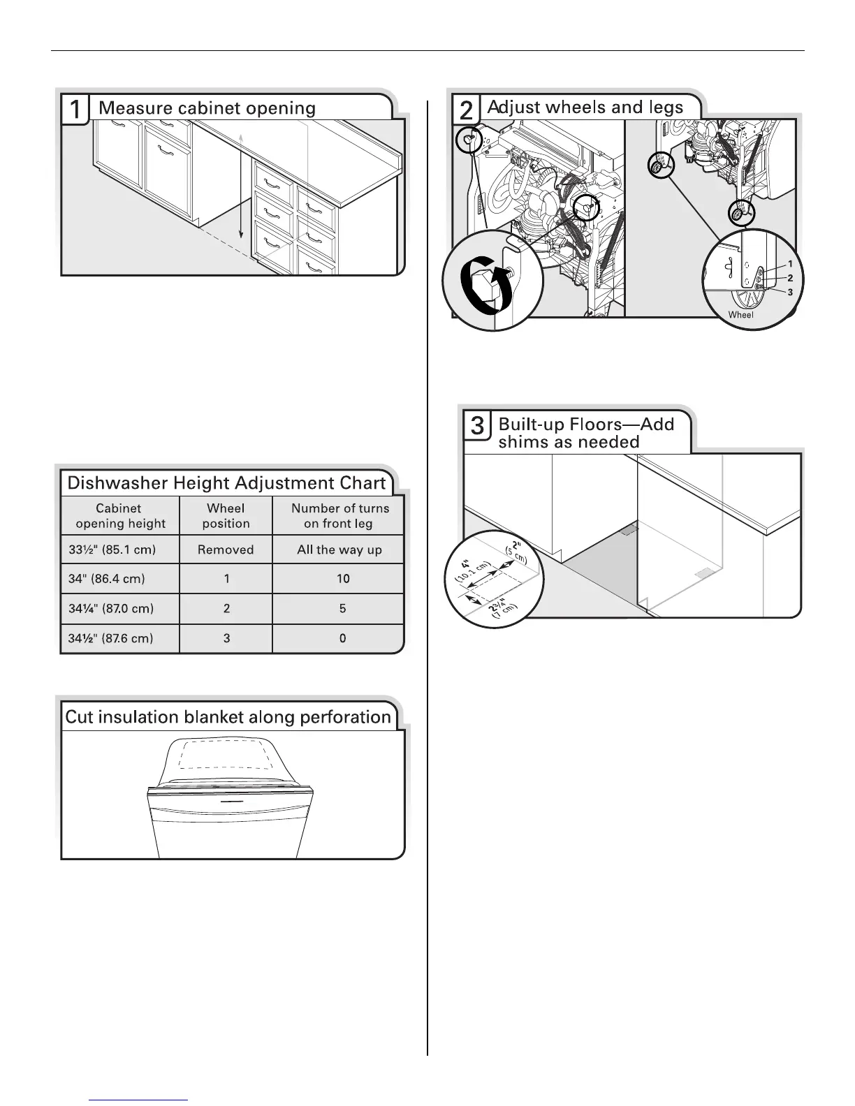 shown to bring the dishwasher up to 34" (86.4 cm) below the