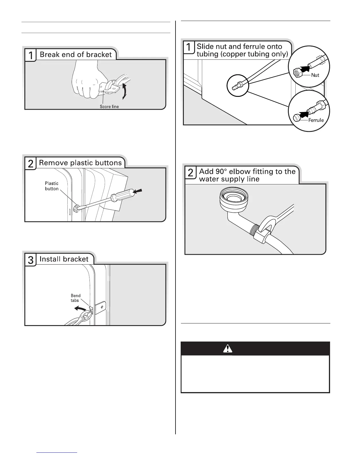 Connect the ³⁄₈" compression fitting of the 90° elbow to the water