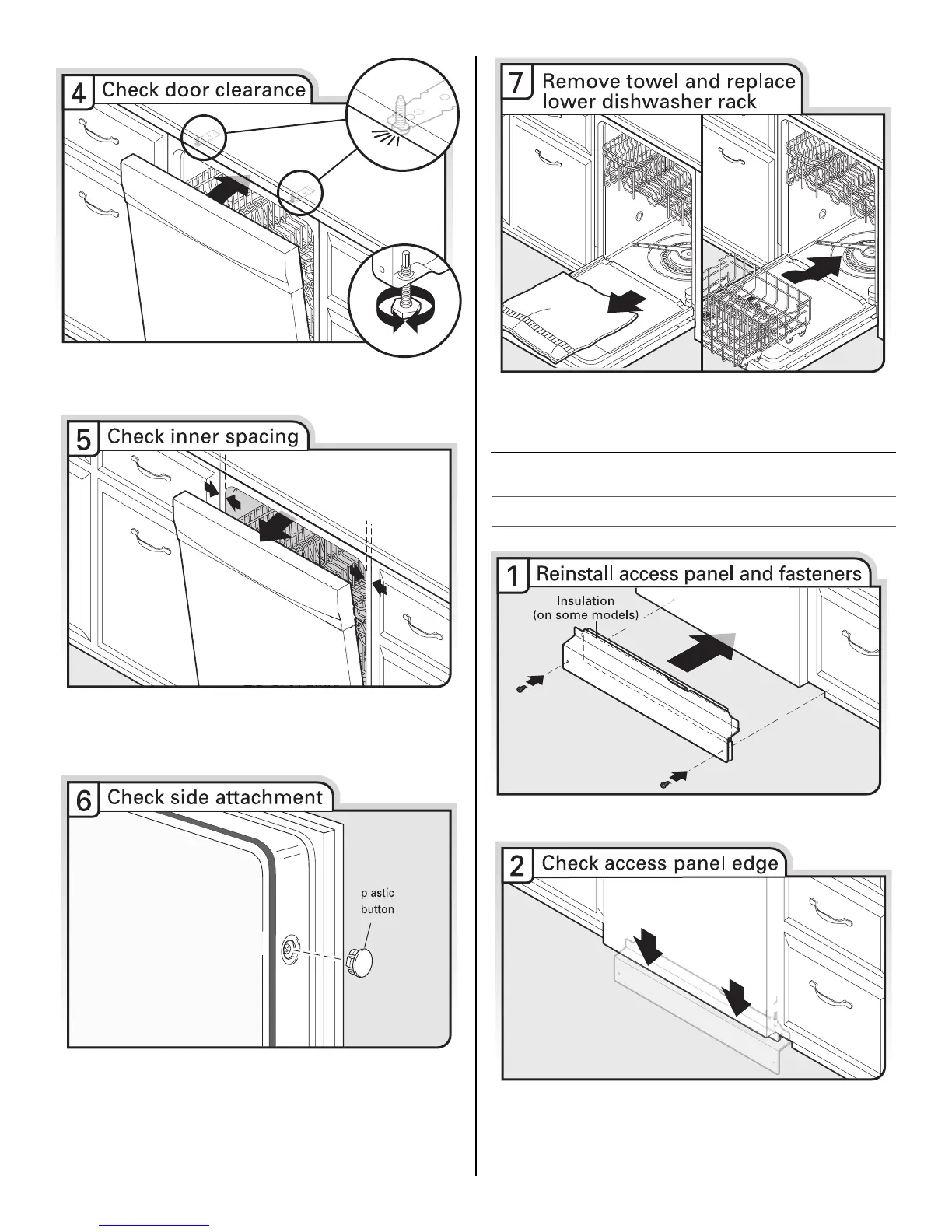 Remove towel from dishwasher. Reinstall the lower dish rack.