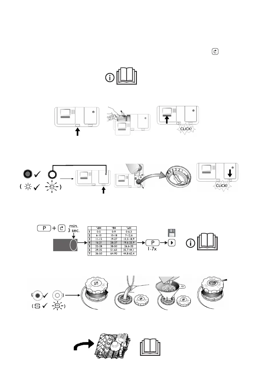 The dishwasher switches on automatically when any button is pressed, except for the button . If no