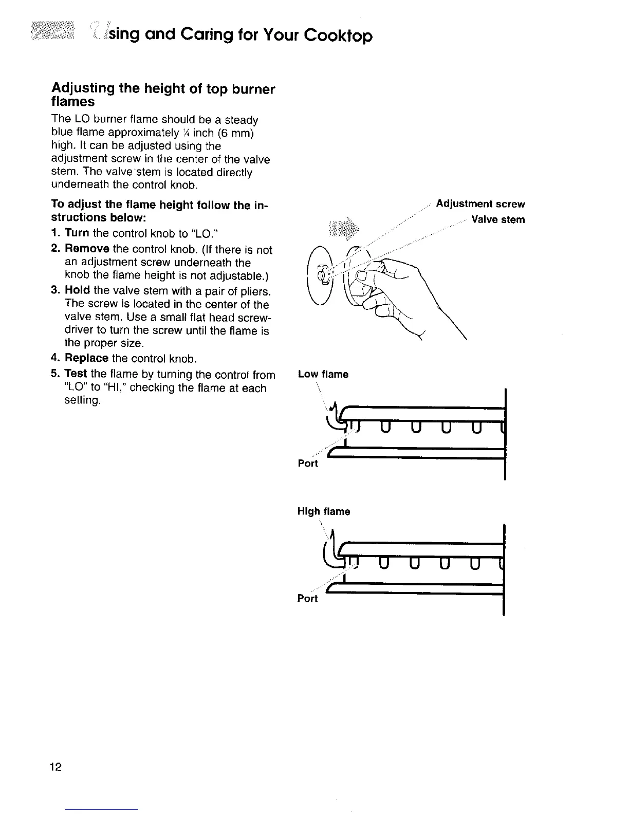 "LO" to "HI," checking the flame at each