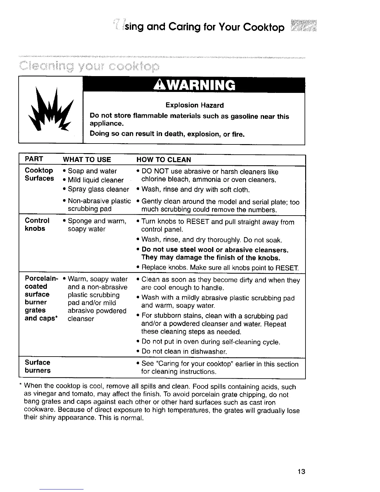 sing and Caring for Your Cooktop
