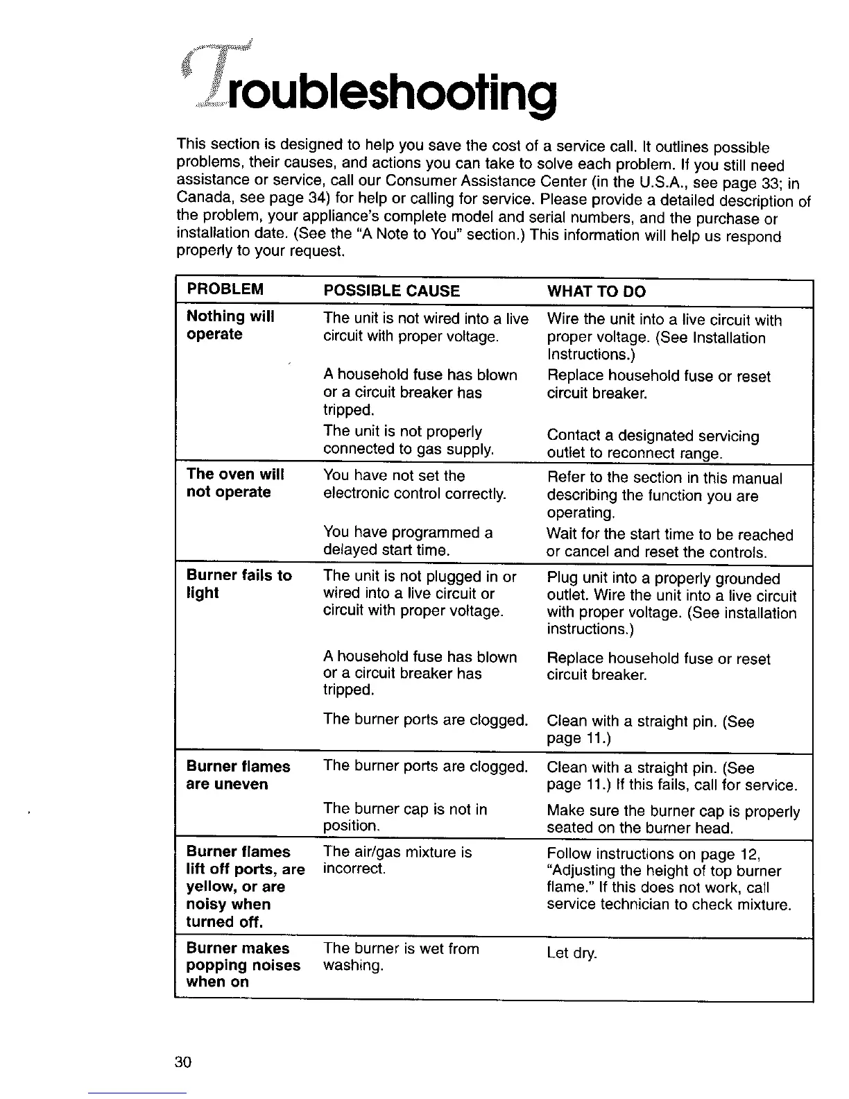 This section is designed to help you save the cost of a service call. It outlines possible