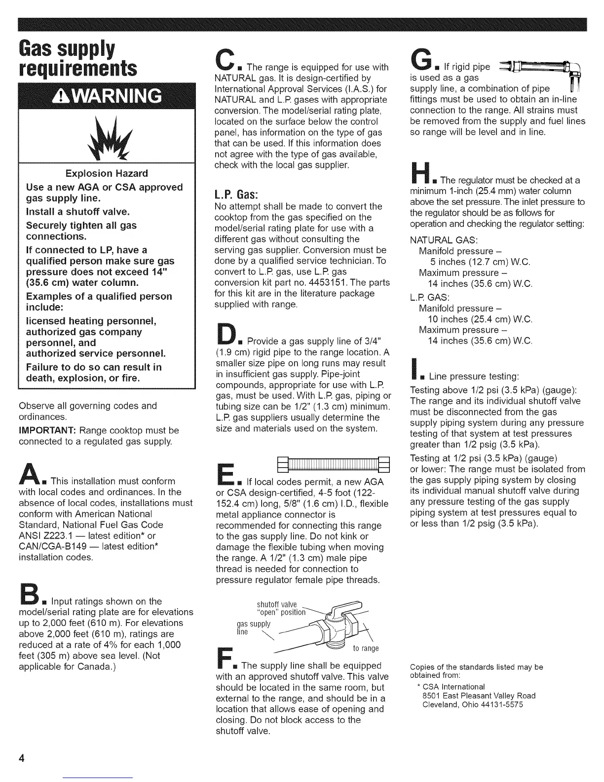 cooktop from the gas specified on the