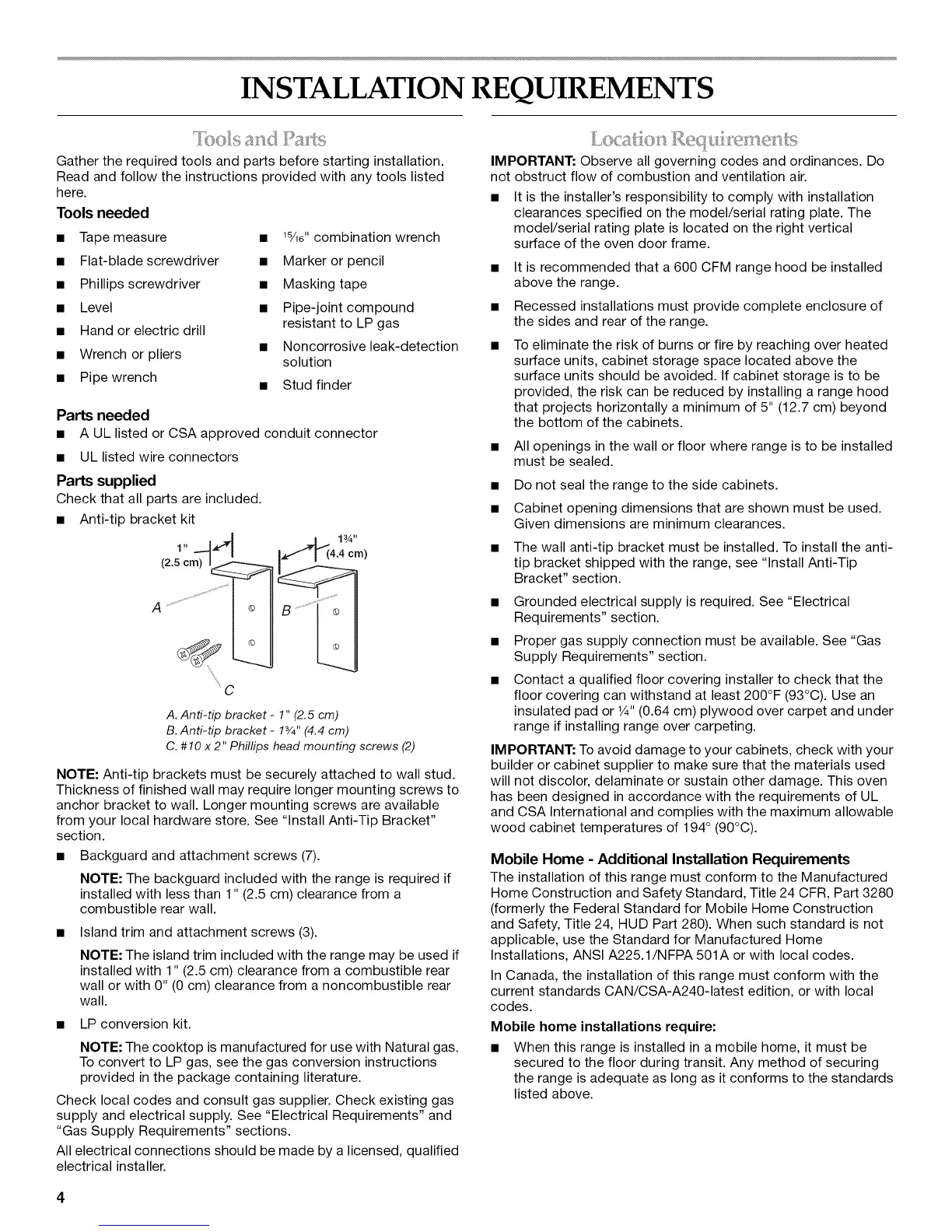 from your local hardware store. See "Install Anti-Tip Bracket"