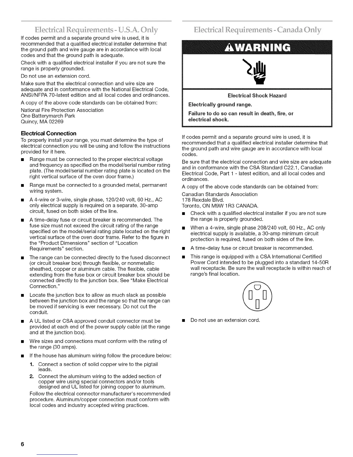 • The range can be connected directly to the fused disconnect