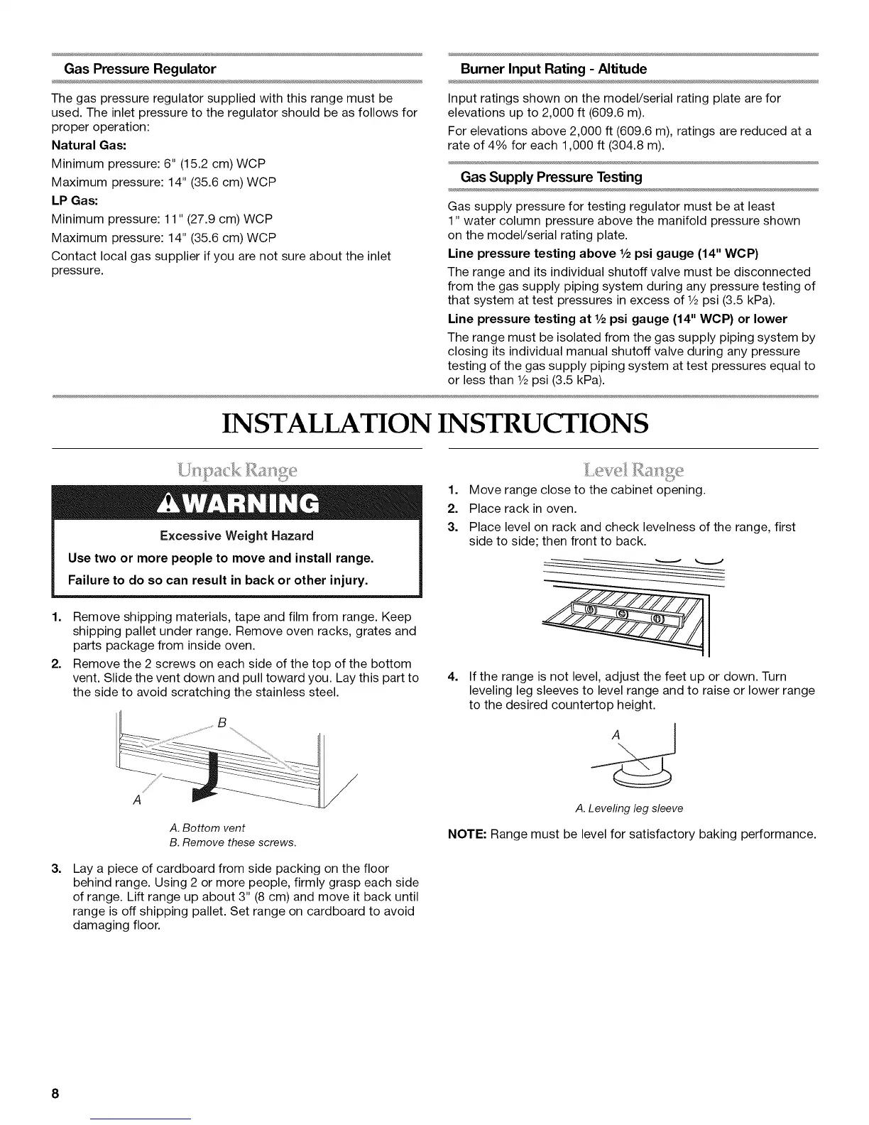 that system at test pressures in excess of 1/2psi (3.5 kPa).