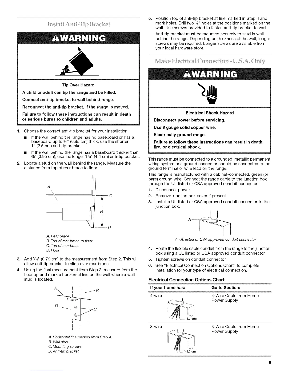 3/8"(0.95 cm), use the longer 13_,,(4.4 cm) anti-tip bracket.